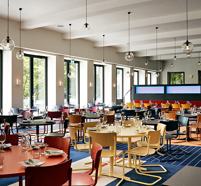 Seit 2018 erstrahlt die Gastronomie im traditionsreichen Künstlerverein Malkasten in neuem Glanze: Für Restaurant und Bar im “Lido im Malkasten” entwarf Künstlerin Rosemarie Trockel eine Teppich-Komposition von beeindruckenden 400m2 Größe. Ebenso kunstvoll – wie auch das restliche Interior – sind die modernen Speisen mit Einflüssen aus der ganzen Welt von Küchenchefin Hannah Kreymann & Team. Unschlagbar: Der Blick von der riesigen Terrasse in den Malkasten-Park!