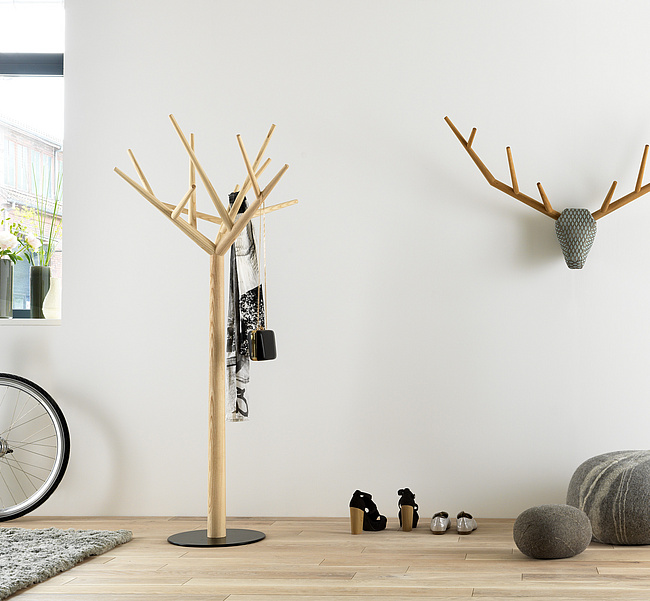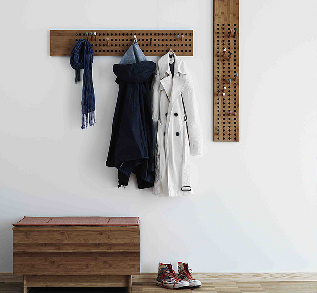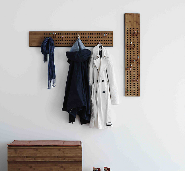 Maximale Flexibilität ermöglichen dir Wandhaken. Greife in einem schmalen Flur statt zu einer ausladenden Garderobe lieber zu Wandhaken oder Knöpfen. Der Vorteil: Haken sparen Platz, lassen sich genau dort anbringen, wo man sie braucht und können jederzeit ergänzt werden.