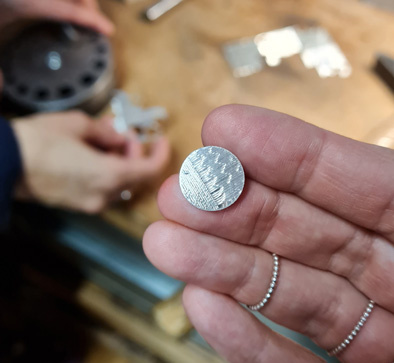Sie ist die einzige Designerin der BLICKFANG, die die historische Technik des Guillochierens für ihre Schmuckstücke verwendet. Dabei handelt es sich um eine fast in Vergessenheit geratene Gravier-Technik aus dem 17. Jahrhundert, die Juwelier Peter Carl Fabergé für seine berühmten Zaren-Eier zur Vollendung gebracht hatte: In eine Edelmetallplatte werden filigrane Muster aus feinsten Linien graviert. Jede Linie hat dabei eine unvergleichliche Brillanz und Tiefenwirkung.