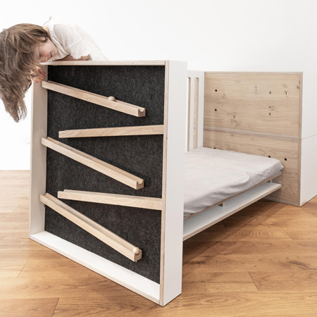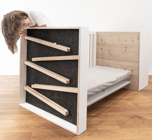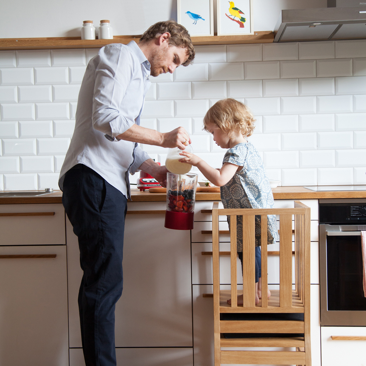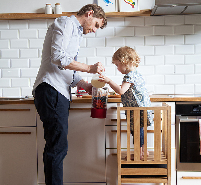 Wie man ihn auch dreht und wendet: Der Zaunkönig ist mal Hochstuhl, mal sicherer Lernturm zum Mitmachen, mal Spielmöbel. Dazu dreht man den Hochstuhl einfach um und stellt ihn als Lernturm an eine Arbeitsfläche oder frei in den Raum. Liegt das kreative Kindermöbel längs, ist es eine gemütliche Bank, eine geheime Räuberhöhle oder ein Schiff auf hoher See. Das Faltpolster kann sowohl Rückenlehne, Sitzfläche oder auch mal die Rutschbahn für das Lieblingsauto werden. Gefertigt wird der Zaunkönig im Erzgebirge in handwerklicher Tradition bei einem Stuhlbauer in fünfter Generation. Ursula Schreck nimmt uns mit hinter die Kulissen ihres Labels.