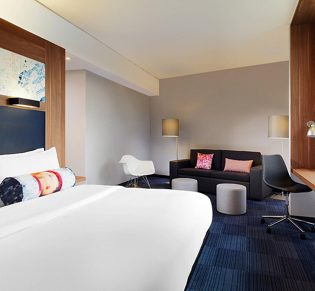 Das Hotel Jaz in the City in der Nähe des Hauptbahnhofs, schafft eine Community und bringt Locals und Besucher:innen in einem völlig neuen Hotelkonzept zusammen. Die Idee: Zu Hause bei alten Freunden zu Besuch sein, die wissen, was gerade wirklich angesagt ist und die Hotspots der Stadt als Nachbarn haben. Im Jaz in the City vereinen sich Musik, Kunst, Kultur und gutes Essen in einem Hotel. Das moderne, klare Design der Zimmer ist erfüllt mit Zeitgeist, ohne sich dabei in Reiseführer-Klischees zu verlieren. Die Nähe zum Bahnhof und der Innenstadt, sind der perfekte Ausgangspunkt für ein Wochenendtrip.